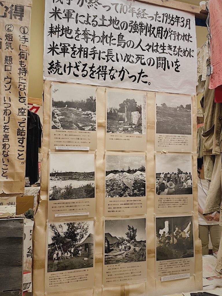 沖縄戦を生き延び、反戦活動を続けてこられた、現館長の謝花さんのお話しからは、「平和の武器は学習である」ことや、「農作物を育てることができる土地こそが人間に最も必要、その土地を次の戦争準備に決して使わしてはならない」ことなどを学びました。資料館では様々な展示品から、戦争の根本的な原因とそれによって導かれる悲惨な結果、土地闘争の歩み、平和を目指すものの心得など、阿波根さんのお考えに触れることができました。