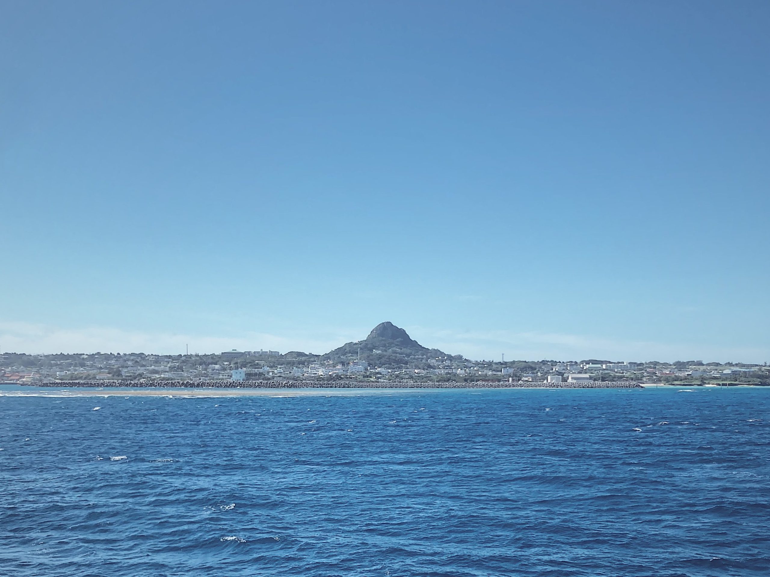 崖で起こった悲惨な状況とは裏腹に、摩文仁の丘の下に広がるあまりにも青く美しい海